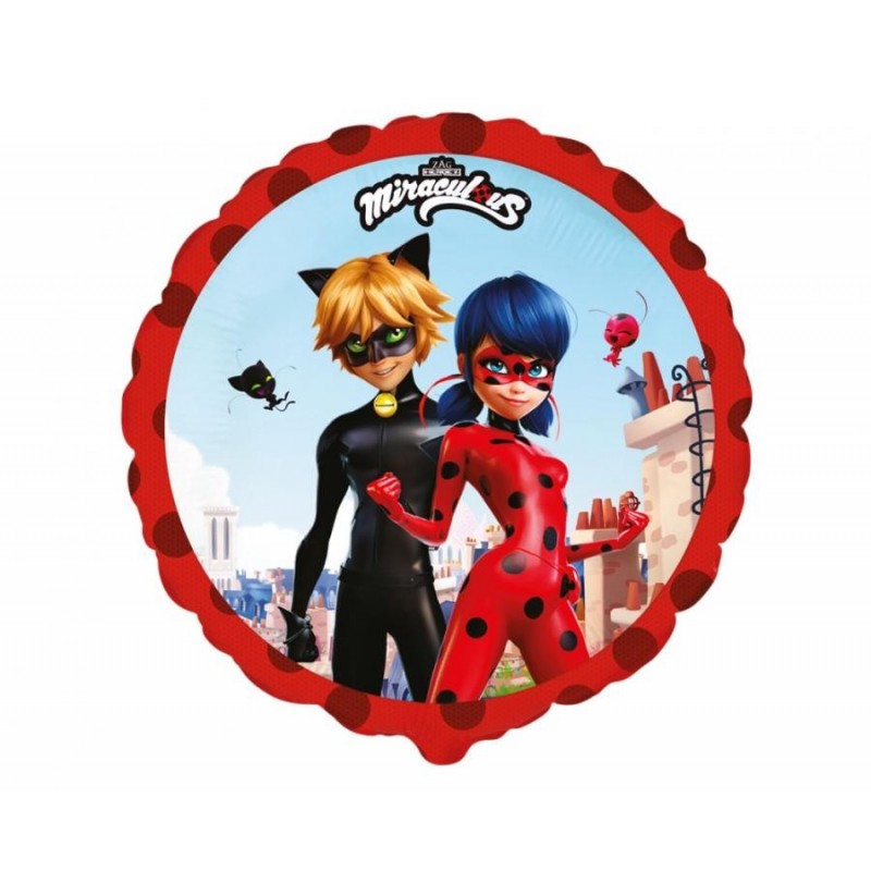BALON FOLIOWY BOHATEROWIE Z BAJKI MIRACULOUS BIEDRONKA I CZARNY KOT, PAKOWANY