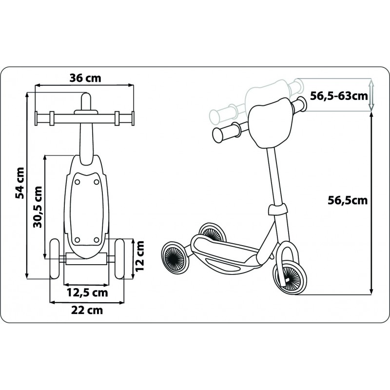Dwa tylne kółka zapewniają bezpieczeństwo oraz utrzymanie równowagi dziecka podczas korzystania z produktu.
